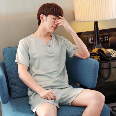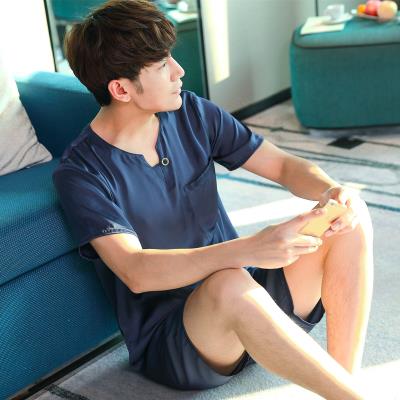 Bộ đồ ngủ của nam giới mùa hè lụa ngắn tay quần short lụa mỏng phù hợp với nam giới mùa hè Hàn Quốc hàng rào lụa phục vụ tại nhà - Nam giới