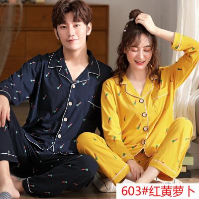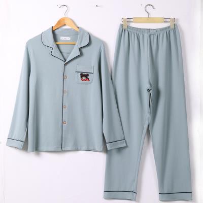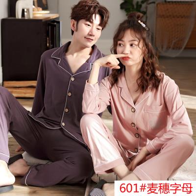 Bộ đồ ngủ nam mùa xuân và mùa thu cotton tinh khiết dài tay của nữ. Đôi bông vợ chồng 30-35-40-50 tuổi trung niên l - Pyjama