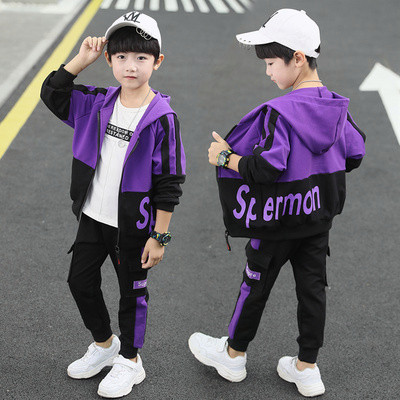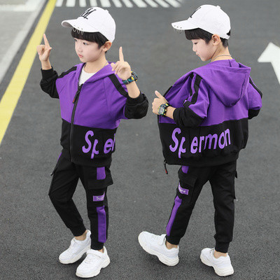Bộ đồ thể thao cho bé trai mùa xuân và mùa thu mới 2020, thời trang trẻ em lớn phong cách nước ngoài áo khoác mùa xuân xu hướng quần âu hai mảnh - Thể thao sau