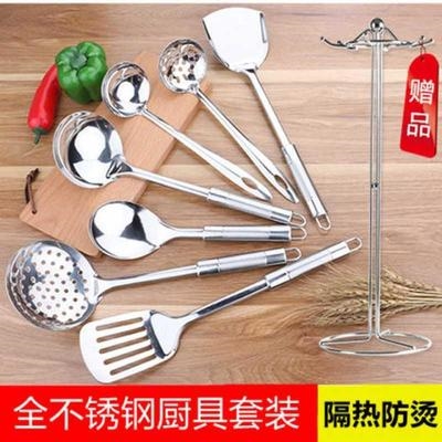 Bộ dụng cụ nhà bếp bằng thép không gỉ dày dặn, nồi nấu ăn, xẻng, thìa súp, thìa có rãnh, xẻng chiên, thìa ăn cơm, đồ dùng nhà bếp bảy món - Phòng bếp