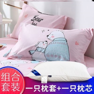 Bộ gối bông tinh khiết lễ hội cộng với áo gối Bộ gối bông đơn khách sạn gối lõi đám cưới bộ đồ giường quà tặng đơn - Gối