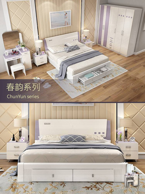 Bộ hoàn chỉnh của nội thất phòng ngủ kết hợp tủ quần áo đơn giản bàn trang điểm bàn trang điểm kết hợp phòng ngủ năm hoặc sáu bộ - Bộ đồ nội thất