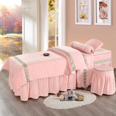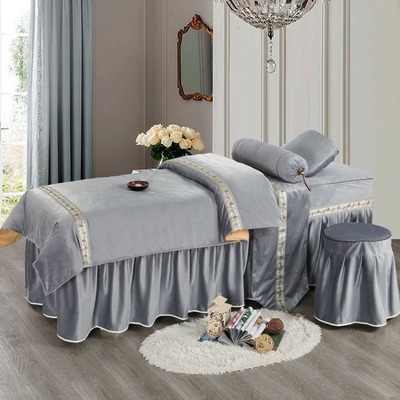 Bộ khăn trải giường làm đẹp bốn mảnh đơn giản vải bông và vải lanh hình xăm khăn trải giường màu xám - Trang bị tấm