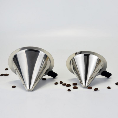 Bộ lọc cà phê hai lớp bằng thép không gỉ 304 tay bình cà phê bộ lọc tách dụng cụ bộ dụng cụ nhỏ giọt kim loại phễu - Cà phê