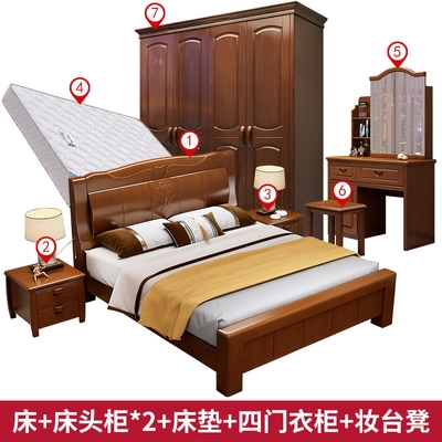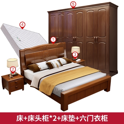 Bộ nội thất phòng ngủ gỗ nguyên tấm toàn bộ căn nhà trọn bộ nội thất phòng ngủ chính kiểu Trung Quốc, giường thứ hai, tủ quần áo, phòng cưới, bộ hoàn chỉnh - Bộ đồ nội thất