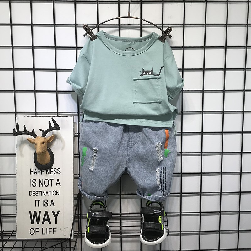 Bộ quần áo bé trai mùa hè 2020 kiểu mới nước ngoài phong cách trẻ em hàn quốc ngắn tay áo hai dây bé trai đẹp trai - Khác