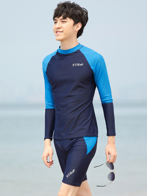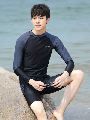 Bộ quần áo bơi nam dài tay chống nắng khô nhanh chóng quần trên đầu suối nước nóng năm điểm xẻ tà cộng với kích thước áo tắm - Nam bơi đầm