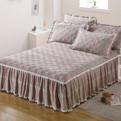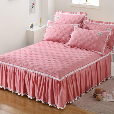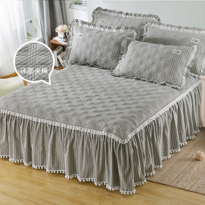 Bông chần sợi nhuộm đã giặt sạch bông ren trải giường khăn trải giường một mảnh ba mảnh đệm bông công chúa ga trải giường ren - Váy Petti
