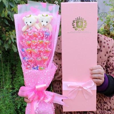 Búp bê bó hoa hoạt hình màu xanh thực sự tuyệt vời khi gửi cho bạn gái một hộp quà đầy sao búp bê màu hồng và trắng lãng mạn mới - Hoa hoạt hình / Hoa sô cô la