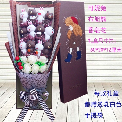 Búp bê con mèo con búp bê bó hoa búp bê hoạt hình bó hoa với hộp quà cho bạn trai búp bê búp bê hoa ngày lễ hộp quà hoa 61 - Hoa hoạt hình / Hoa sô cô la