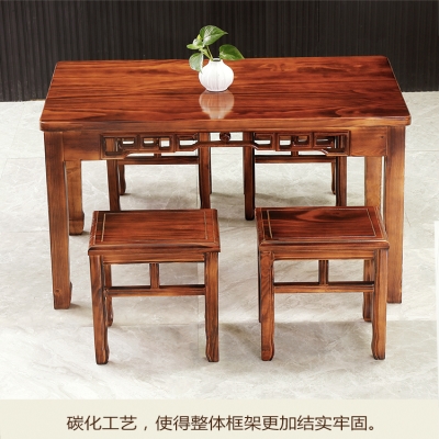 Cacbon chống ăn mòn bàn và ghế đồ nội thất ngoài trời căn hộ nhỏ gỗ rắn bàn ăn nhanh khách sạn bàn ghế cổ kết hợp bộ bàn ghế - Bàn ghế ngoài trời / sân
