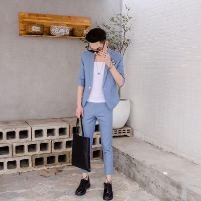 Cao cấp mùa xuân và mùa hè mới ba phần tư tay áo nhỏ phù hợp với nam giới phong cách Hàn Quốc hộp đêm tạo mẫu tóc hộp đêm tay áo phù hợp với hai - Suit phù hợp