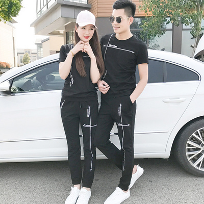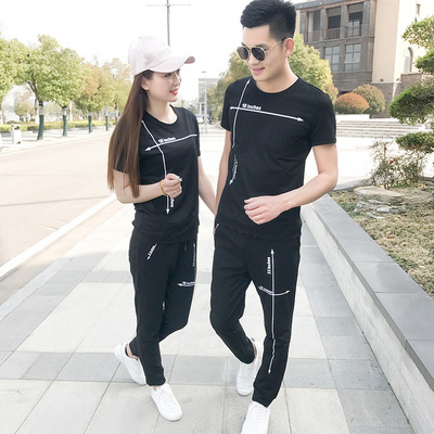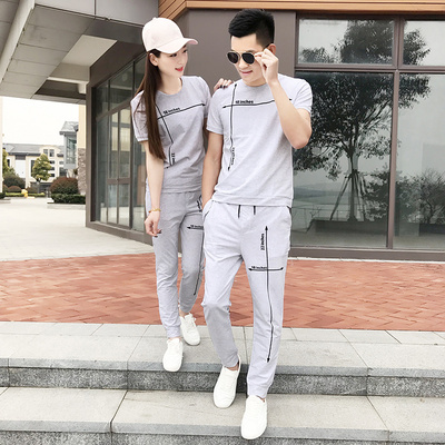Cặp đôi gầy còn lại nhàn nhã vận động bộ đồ viễn thông 2020 mùa hè mới áo thun cổ tròn tay ngắn nam và nữ sửa chữa - Bộ đồ