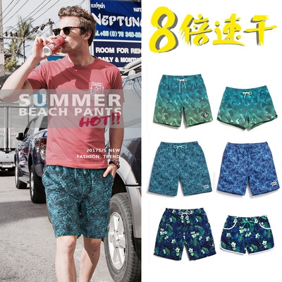 Cặp đôi quần đi biển của nam giới nhanh khô lỏng kích thước lớn bên bờ biển kỳ nghỉ kéo dài quần đùi nữ quần đùi mùa xuân nóng quần bơi - Quần bãi biển
