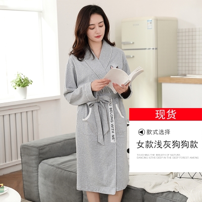 Cặp đôi váy ngủ phụ nữ mùa xuân và mùa thu bông tinh khiết dài tay áo choàng tắm của nam giới mùa thu dài cotton pyjama nam mùa thu Nhật Bản yukata cộng với kích thước - Night Robe