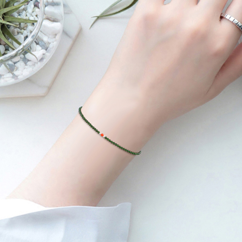 Changyi series "Xiumei" 2mm hạt mịn màu xanh lá cây vòng tay đá sa thạch vòng chân vòng tay trang sức khóa bạc s925 cho bạn gái - Vòng chân