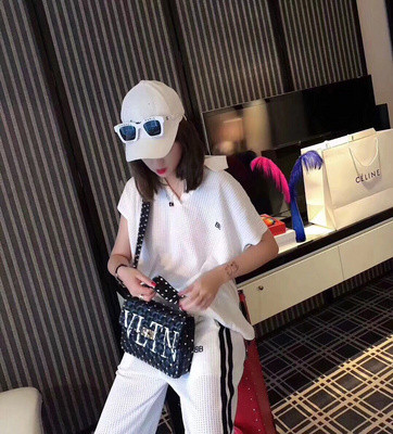 Châu Âu ga 19 mùa hè mới cộng với kích thước của phụ nữ thời trang dệt kim rỗng trên cùng quần âu thể thao hai mảnh phù hợp với xu hướng - Quần thể thao