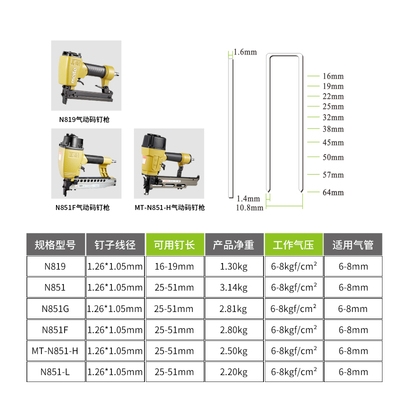 Chính hãng Meite N851 Mã khí nén Máy đóng đinh N851FG Burst Máy đóng đinh ngựa hình chữ U Loại cửa N Máy đóng đinh Công cụ chế biến gỗ Khí - Công cụ điện khí nén