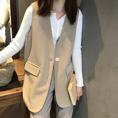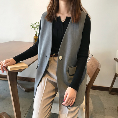 Cổ chữ V phù hợp với vest nữ ngắn phiên bản Hàn Quốc của phong cách cổ điển Hồng Kông cổ điển một nút áo ghi lê vest vest vest - Áo vest
