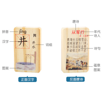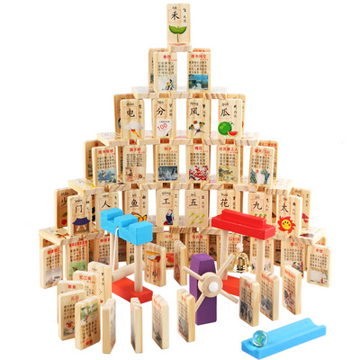 Cờ domino thiếu nhi, bài thơ Đường, 100 miếng ghép, đồ chơi trí tuệ, giáo dục sớm, học chữ, số, bé trai 4-6 tuổi - Khối xây dựng