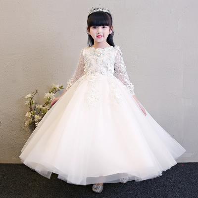 Cô gái nhỏ công chúa váy cô gái bông gạc váy trẻ em váy trắng gạc váy hoa cô gái váy cưới chủ nhà trang phục mùa đông - Váy trẻ em