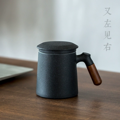 Cốc gốm phong cách Nhật Bản có nắp đậy tách trà văn phòng retro tách trà công suất lớn có thể được tùy chỉnh - Tách