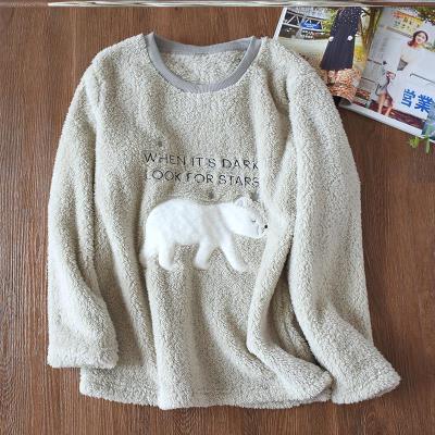 Coral không cổ một mảnh dài tay mã vài phiên bản hàn quốc bộ đồ ngủ nhung nữ mùa đông áo khoác nhung nữ cổ tròn - Pyjama