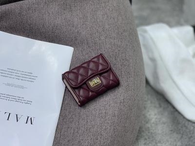 Cửa hàng Trùng Khánh nhỏ thơm phong cách khâu hình thoi mini chủ thẻ 2019 mới Châu Âu và Mỹ ví tiền xu bằng da mềm nữ ngắn - Chủ thẻ