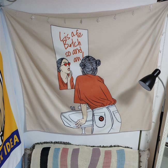 Đầu giường phòng bố trí nền vải thảm trang trí cô gái phong cách trái tim Nơi trú ẩn phong cách Nhật Bản tường treo vải phòng ngủ ký túc xá trang trí - Tapestry