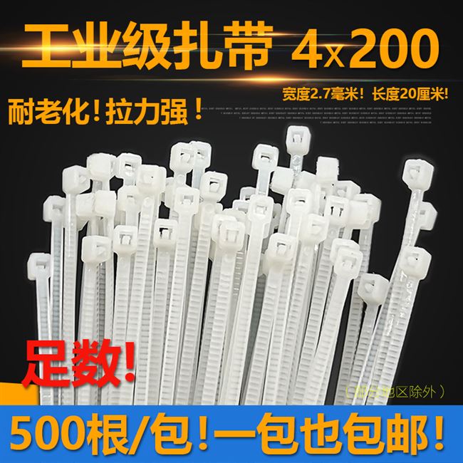 Dây buộc cáp nylon 4x200mm500 * Khóa nhựa chắc chắn tự khóa dây buộc cố định dây buộc màu trắng - Quản lý dây / dây