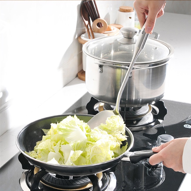 Dày thép không gỉ 304 thìa nhà bếp đồ dùng nhà bếp một tay cầm dài thìa nấu ăn thìa chiên thìa sắt - Phòng bếp