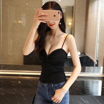Đêm cạp trễ sexy ngắn mặc bên ngoài địu nhỏ, quán bar hộp đêm áo vest nhỏ hở vai, ngực hiển thị trên - Áo ba lỗ