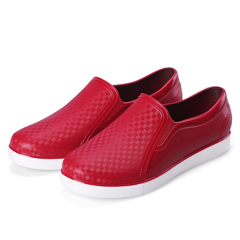 Đẹp thời trang cắt ngắn ống ngắn miệng nông cô gái ủng đi mưa nhà bếp đầu bếp không thấm nước chống trượt giày nước làm việc giày cao su giày cao su - Rainshoes