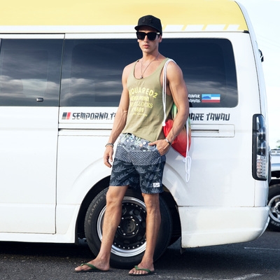 Đi nghỉ mát quần đi biển của nam giới nhanh khô rộng rãi quần đùi rộng rãi bên bờ biển quần năm điểm quần short suối nước nóng quần bơi hoa thủy triều - Quần bãi biển