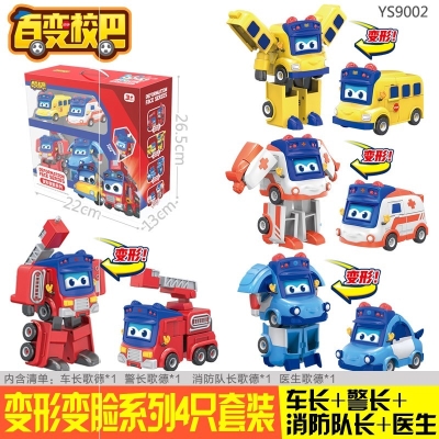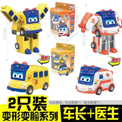 Đồ chơi ô tô robot thay đổi khuôn mặt thuyền trưởng xe buýt trường học loạt âm thanh và ánh sáng Goethe đồ chơi xe buýt trường học biến dạng sáu trong một cảnh - Đồ chơi robot / Transformer / Puppet cho trẻ em