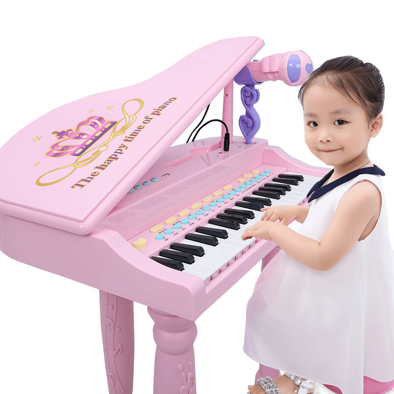 Đồ chơi trẻ em, đàn organ điện tử trẻ em 1-3-6 tuổi, đàn piano gỗ cho bé, cô bé xếp hình, đàn piano nhạc có micro - Micrô