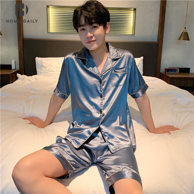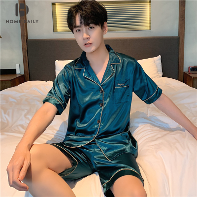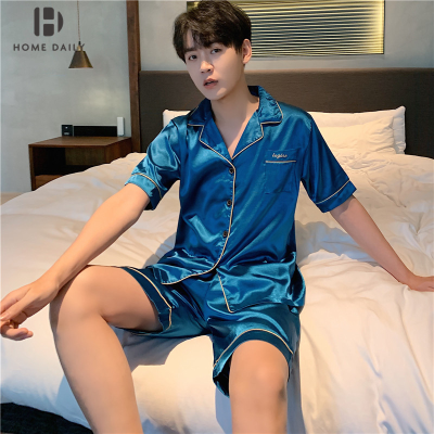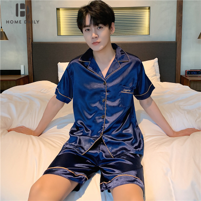 Đồ ngủ của nam giới quần đùi mùa hè phù hợp với lụa mỏng cỡ lớn mùa hè lỏng lẻo Hàn Quốc nam giới giản dị lụa phục vụ tại nhà - Nam giới