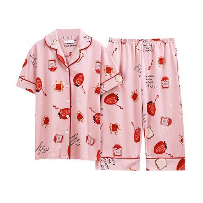 Đồ ngủ của phụ nữ cotton mùa hè ngắn tay cắt quần tây mỏng cardigan lỏng lẻo dễ thương giản dị phục vụ tại nhà hai mảnh VA - Nam giới