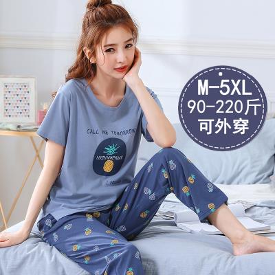 Đồ ngủ của phụ nữ mùa hè cotton tinh khiết mỏng ngắn tay quần tây cắt ngắn phù hợp với người béo lớn béo mm200 kg lỏng lẻo dịch vụ tại nhà - Bên ngoài ăn mặc