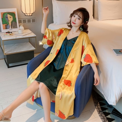 Đồ ngủ của phụ nữ mùa hè mỏng phần với đệm ngực áo choàng tắm lụa gợi cảm dây treo váy ngủ váy ngủ lụa thực sự chiều dài zs - Night Robe