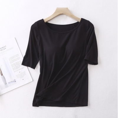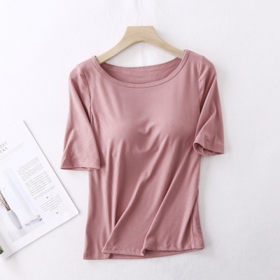 Đồ ngủ dành cho nữ áo thun ngắn tay có gân có đệm ngực, áo cúp ngực không dây, dịch vụ tập yoga tại nhà một mảnh - Pyjama