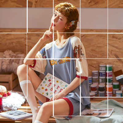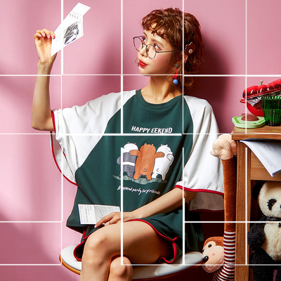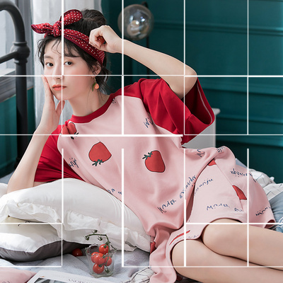 Đồ ngủ dễ thương và có thể mặc được phụ nữ mùa hè ngắn tay bông hoa phù hợp với quốc gia cổ áo cardigan mỏng đơn giản phục vụ tại nhà - Cặp đôi