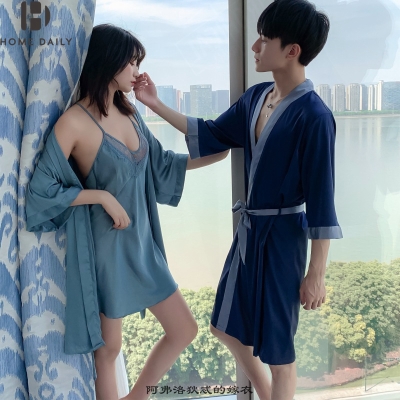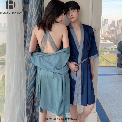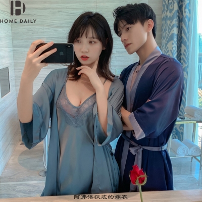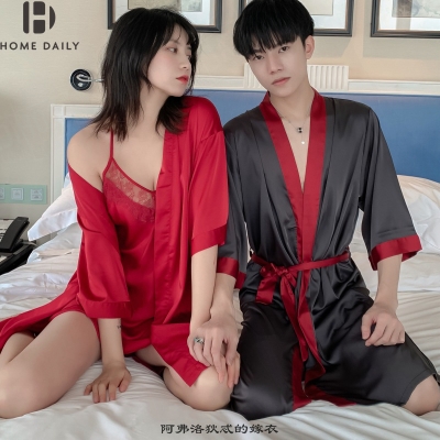 Đồ ngủ đôi, đồ ngủ lụa mùa hè, váy ngủ nữ tính, dịch vụ mặc nhà mỏng của đàn ông bằng lụa thật, đồ ngủ mùa xuân và mùa thu - Cha mẹ và con