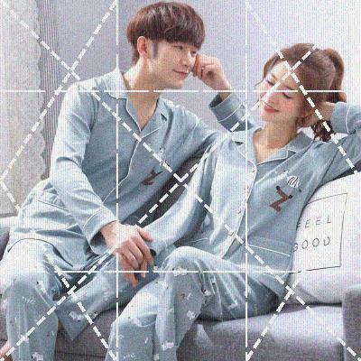 Đồ ngủ đôi nam xuân thu mẫu áo dài tay cotton nguyên chất cotton béo plus size thường cardigan người yêu mùa đông. - Pyjama