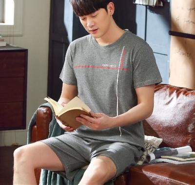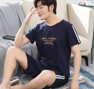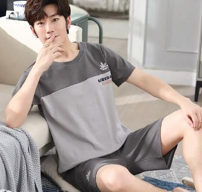 Đồ ngủ ngắn tay nam quần đùi cotton mùa hè mỏng thể thao nam mùa hè ngắn rào cản bộ dịch vụ nhà lỏng lẻo - Pyjama