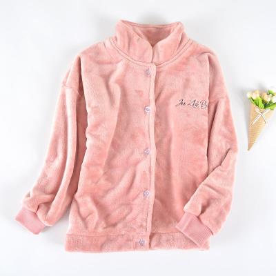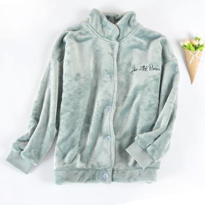 Đồ ngủ nữ ấm áp mùa thu đông dày nhung nhung một mảnh áo sơ mi đơn giản đứng cổ áo cardigan lỏng flannel dịch vụ nhà - Pyjama