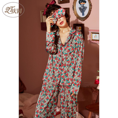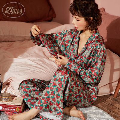 Đồ ngủ nữ mùa hè băng lụa dài tay phù hợp với ba mảnh phiên bản Hàn Quốc rời cỡ lớn lụa mỏng phần dâu mùa xuân và mùa thu dịch vụ tại nhà - Nam giới
