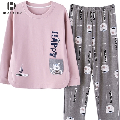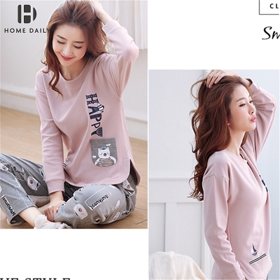 Đồ ngủ nữ mùa hè cotton dài tay đơn giản phục vụ tại nhà hàn quốc mùa xuân và mùa thu áo cardigan có thể được mặc với bộ đồ hai mảnh - Cha mẹ và con