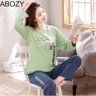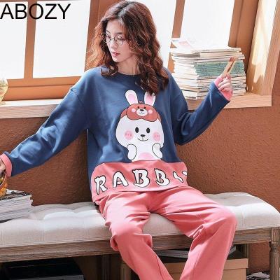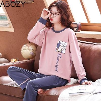 Đồ ngủ nữ mùa thu và mùa đông cotton cotton dày áo thun Bộ đồ ngủ phụ nữ cotton in thời trang phương tây phong cách phục vụ sinh viên mùa đông - Pyjama