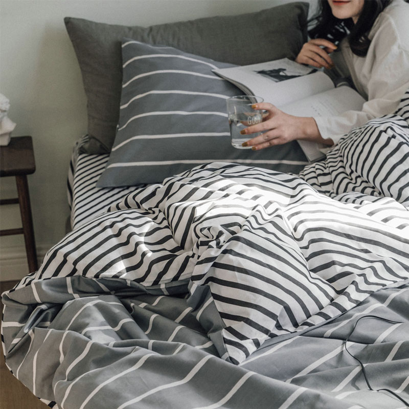 Đơn giản màu rắn đơn giản vỏ chăn sọc lưới đen và trắng xám Bắc Âu bông đôi đơn đơn 2 mét 1,8m đơn - Quilt Covers